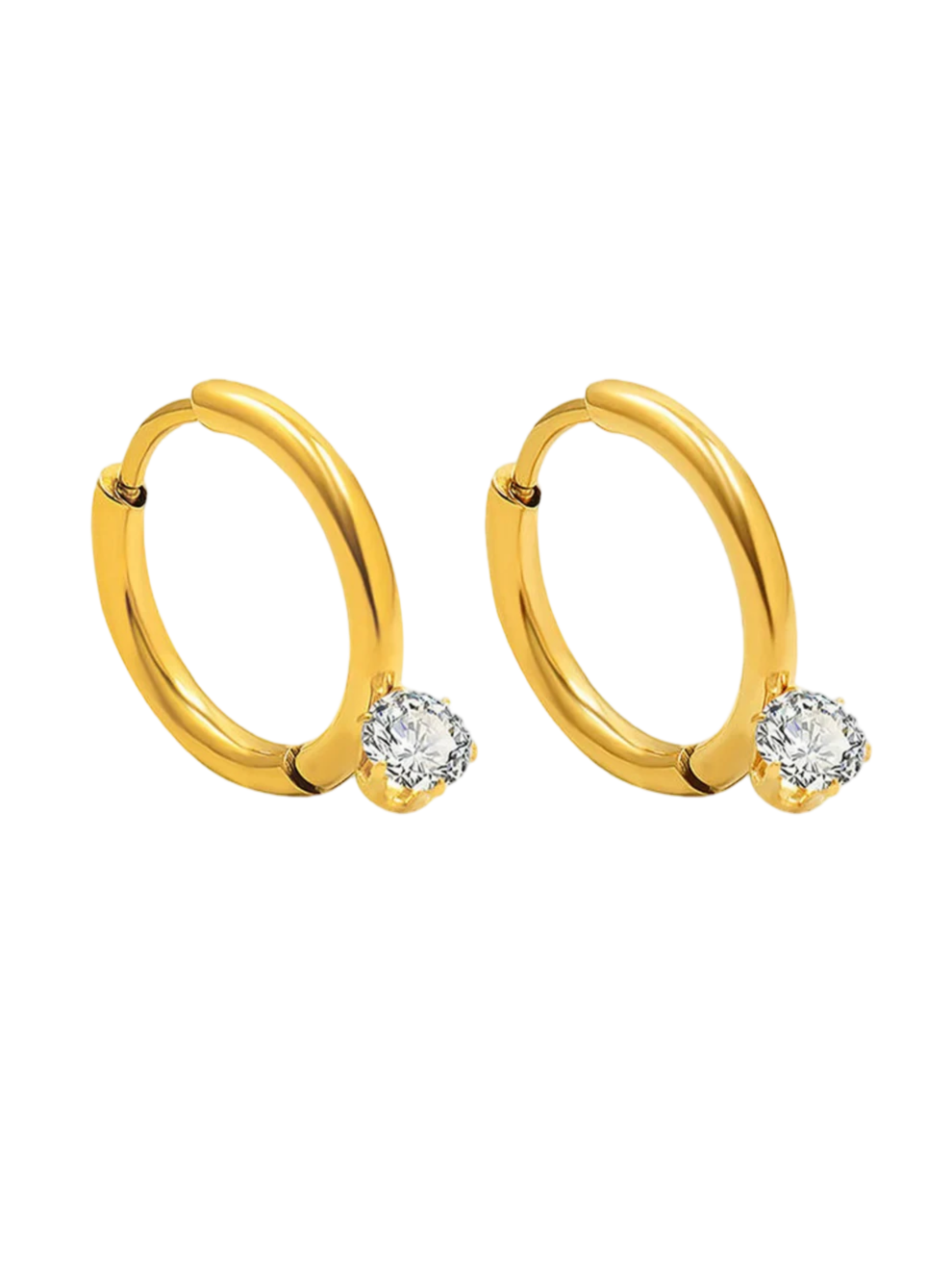 Disse øreringe er belagt med 18K guld ved hjælp af PVD-belægning, som giver en langvarig og skinnende finish.