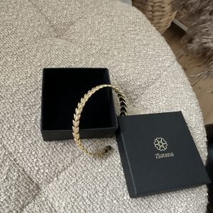 Fremhæv naturens skønhed med Golden Laurel Cuff. De delikate bladmotiver tilfører et strejf af kongelig sofistikation, og det åbne design gør det nemt at justere armbåndet. Bær det til hverdag for at tilføje en smule luksus, eller brug det til festlige lejligheder for et elegant og stilfuldt udtryk.