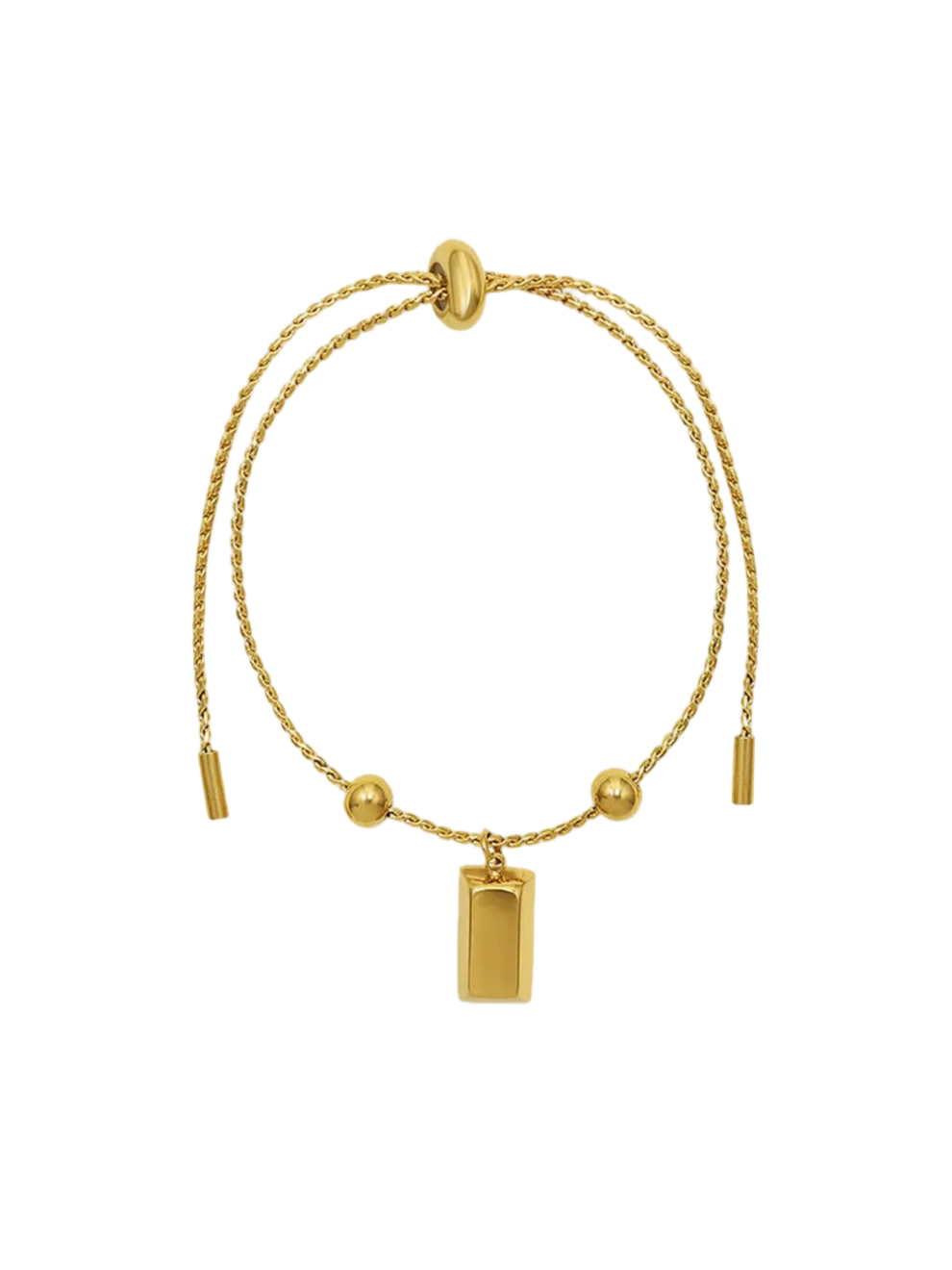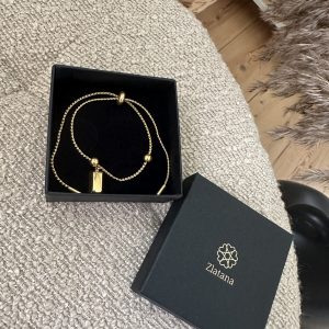 Dette armbånd er belagt med 18K guld ved hjælp af PVD-belægning, som giver en langvarig og skinnende finish.
