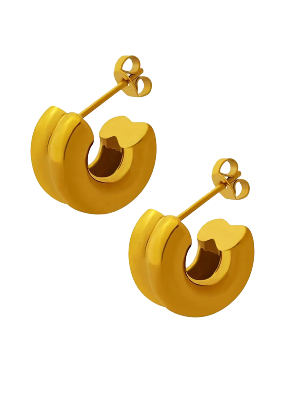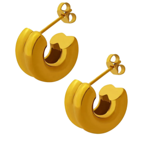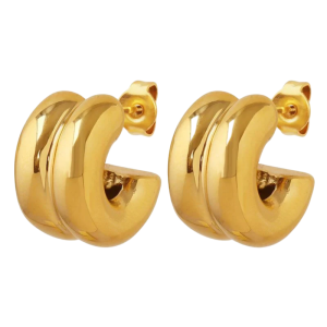 Disse øreringe kombinerer en blød, dobbeltbuet form med en strålende guldbelægning, der giver et elegant og moderne udtryk – perfekt til både hverdagsbrug og særlige lejligheder.